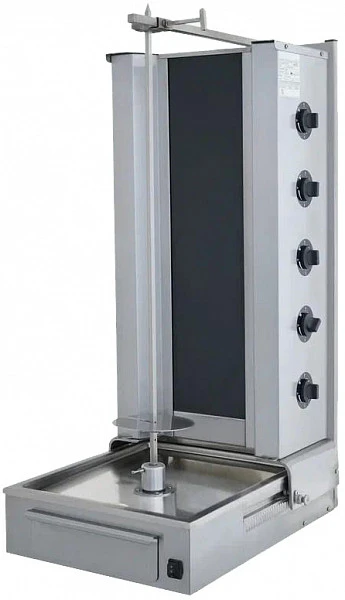 Гриль для шаурмы T-Lux KGD 5 нижний привод предназначен для запекания специально подготовленного свиного, говяжьего, бараньего или куриного мяса на вертеле, идеален для использования в кафе, ресторанах, столовых, а также точках быстрого питания.