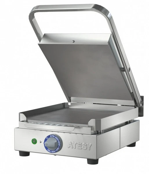 Гриль контактный Atesy Маэстро ГК-1/1.55Г-1 предназначен для быстрого приготовления и разогрева горячих блюд благодаря одновременному их поджариванию с двух сторон. С помощью данного аппарата можно приготовить куски мяса, рыбы, курицы, овощей, а также горячие бутерброды, сэндвичи, панини.