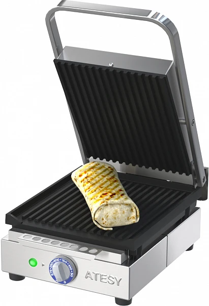 Atesy Маэстро ГК-1-1.55РЧ предназначен для быстрого приготовления и разогрева горячих блюд благодаря одновременному их поджариванию с двух сторон. С помощью данного аппарата можно приготовить куски мяса, рыбы, курицы, овощей, а также горячие бутерброды, сэндвичи, панини.