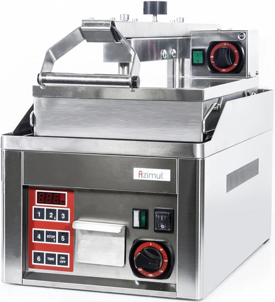Гриль контактный Azimut KDA 33ED разработан для быстрого и удобного приготовления разнообразных блюд: стейков из мяса, рыбы, гамбургеров, мясного фарша, яиц, а также для приготовления овощей.