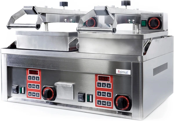 Гриль контактный Azimut KDA 66ED разработан для быстрого и удобного приготовления разнообразных блюд: стейков из мяса, рыбы, гамбургеров, мясного фарша, яиц, а также для приготовления овощей.