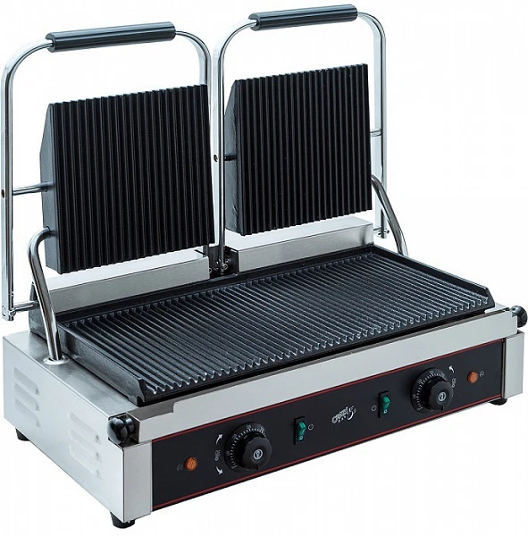 Гриль контактный Crazy Pan CP-CG44R используется на предприятиях общественного питания и торговли для жарки мяса, птицы, рыбы, овощей, а также для приготовления стейков, гамбургеров и горячих сэндвичей.