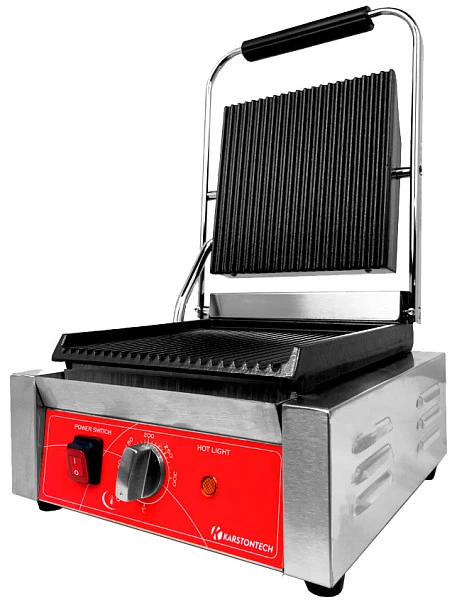 Гриль контактный Karstontech KS-CG10 используется на предприятиях общественного питания и торговли для жарки мяса, птицы, рыбы, овощей, а также для приготовления стейков, гамбургеров и горячих сэндвичей.