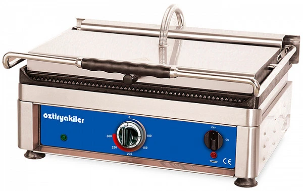 Гриль контактный Ozti OTM 2740 для жарки мяса, птицы, рыбы, овощей, а также для приготовления стейков, гамбургеров и горячих сэндвичей на предприятиях общественного питания и торговли.