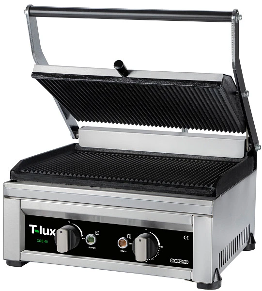 Гриль контактный T-Lux CGE 40 предназначен для жарки и разогрева мяса, птицы, рыбы, овощей, а также для приготовления стейков, гамбургеров, горячих бутербродов и сэндвичей.