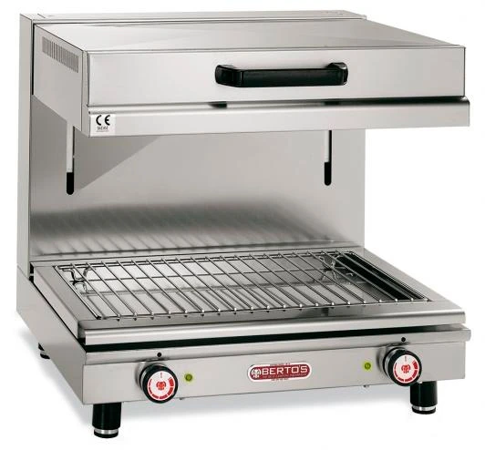 Гриль саламандра BERTO`S SA/E 60 c мобильной верхней поверхностью предназначен для обжаривания стейков и сосисок, приготовления сэндвичей, полуфабрикатов, подогрева булочек, гамбургеров, хот-догов и поддержания готовых блюд в разогретом состоянии на предприятиях общественного питания и торговли.