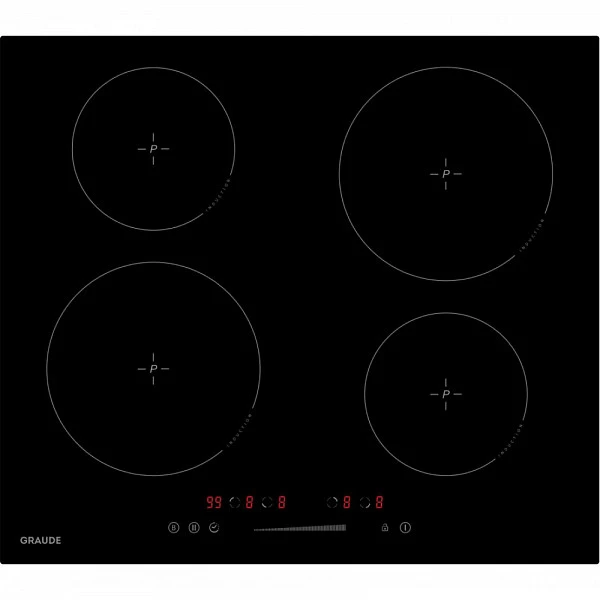 Прибор предусматривает в себе 4 конфорки разных размеров и мощности. Индукционный способ нагрева действует непосредственно на дно посуды, благодаря чему уменьшается расход электроэнергии и времени — даже кипячение больших объемов воды не займет много времени. Индикаторы остаточного тепла покажут, какая из зон модели еще не остыла.