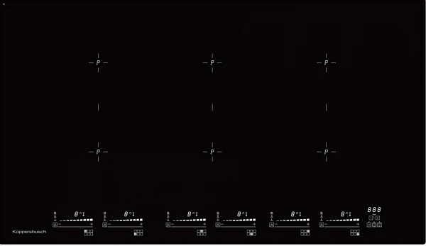 6 варочных зон 21 x 19 см / 2100 Вт (3700 Вт*)