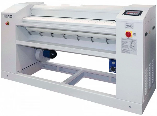 • Прижимной цилиндр с мягкой обмоткой обеспечивает плотный прижим ткани к поверхности гладильного вала, разглаживает поперечные и продольные складки на белье, значительно повышая качество глажения.