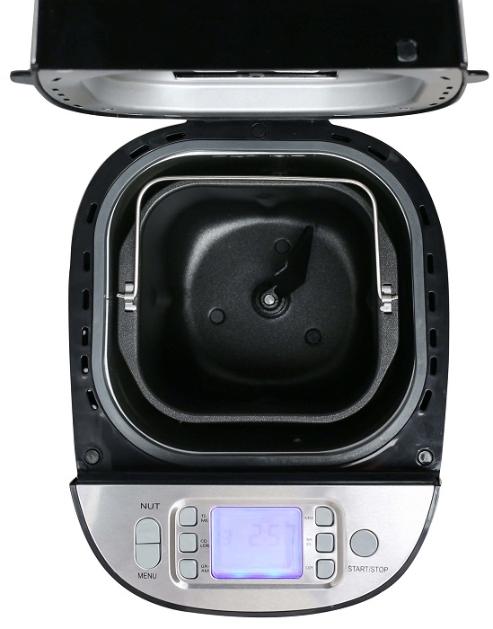 В комплект поставки входит мерная ложка, мерный стакан, лопасть для замеса теста и дозатор, который позволяет в процессе замеса добавлять в тесто орехи и сухофрукты.