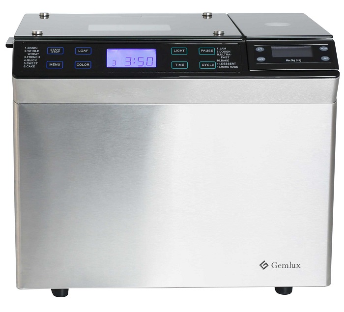 Хлебопечка Gemlux GL-BM-999W - это продвинутая модель с расширенным функционалом для настоящих мастеров хлебопечения. Хлебопечка может выпекать не только обычный белый хлеб, но и французский, цельнозерновой, бездрожжевой и сдобный, а также замешивать и расстаивать тесто, готовить десерты и варить джемы и мармелады.