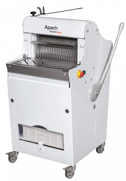 Хлеборезка Apach Bakery Line C42S 13 мм ручная на колесах используется на предприятиях общественного питания и торговли для нарезки хлеба с плотным мякишем или с коркой средней твердости.
