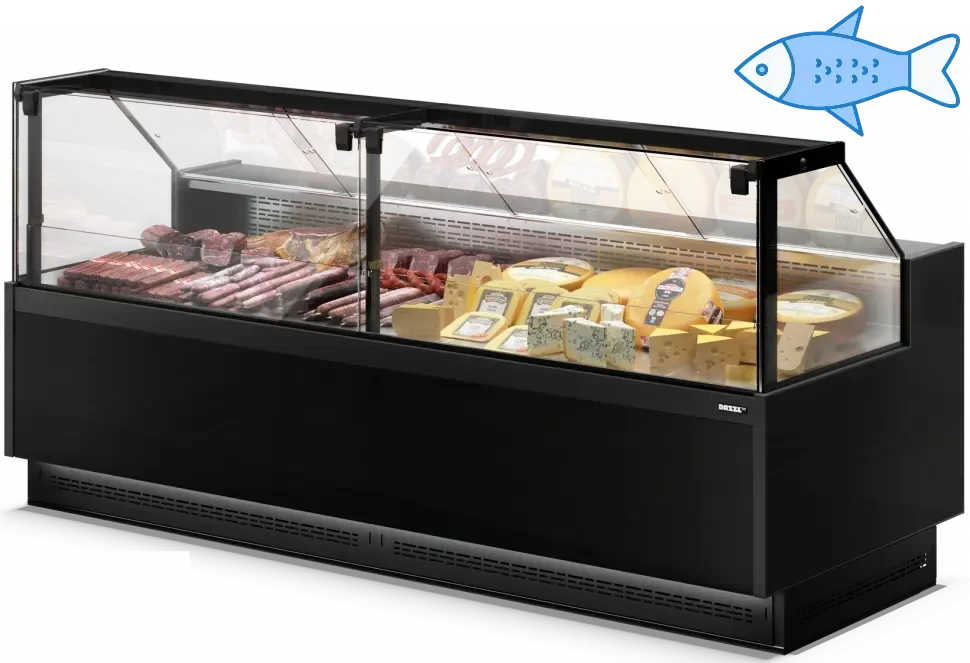 Холодильная витрина Dazzl Galaxy 090 125 рыба на льду предназначена для демонстрации, охлаждения, а также организации кратковременного хранения рыбы и прочих продуктов. Оборудование подходит для оснащения торговых точек.