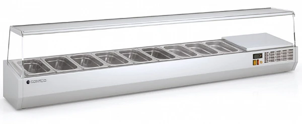 Холодильная витрина для ингредиентов Coreco EI-1/3-150 предназначена для кратковременного хранения ингредиентов при приготовлении пиццы и салатов, а так же демонстрации и продажи предварительно охлажденных пищевых продуктов в гастрономических ёмкостях на предприятиях торговли и общественного питания.