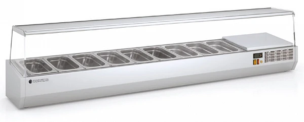Холодильная витрина для ингредиентов Coreco EI-1/3-225 предназначена для кратковременного хранения ингредиентов при приготовлении пиццы и салатов, а так же демонстрации и продажи предварительно охлажденных пищевых продуктов в гастрономических ёмкостях на предприятиях торговли и общественного питания.