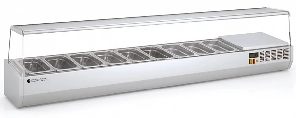 Холодильная витрина для ингредиентов Coreco EI150 предназначена для кратковременного хранения ингредиентов при приготовлении пиццы и салатов, а так же демонстрации и продажи предварительно охлажденных пищевых продуктов в гастрономических ёмкостях на предприятиях торговли и общественного питания.