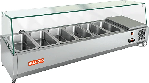 Холодильная витрина для ингредиентов Hicold VRX 1400 со стеклом предназначена для кратковременного хранения ингредиентов при приготовлении пиццы и салатов, а так же демонстрации и продажи предварительно охлажденных пищевых продуктов в гастрономических ёмкостях на предприятиях торговли и общественного питания.