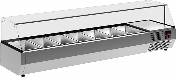 Холодильная витрина для ингредиентов Полюс A30 SM 1,0-G 0430 предназначена для кратковременного хранения ингредиентов при приготовлении пиццы и салатов, а так же демонстрации и продажи предварительно охлажденных пищевых продуктов в гастрономических ёмкостях на предприятиях торговли и общественного питания.