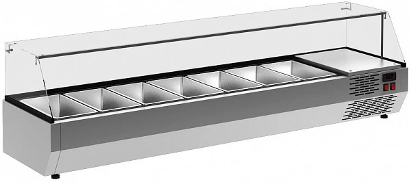 Холодильная витрина для ингредиентов Полюс A40 SM 1,0-G 0430 предназначена для кратковременного хранения ингредиентов при приготовлении пиццы и салатов, а так же демонстрации и продажи предварительно охлажденных пищевых продуктов в гастрономических ёмкостях на предприятиях торговли и общественного питания.