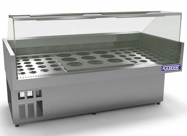 Холодильная витрина Wok Камик ВХ-ВОК129 используется на предприятиях общественного питания и торговли для охлаждения, демонстрации и кратковременного хранения ингредиентов для приготовления лапши ВОК.