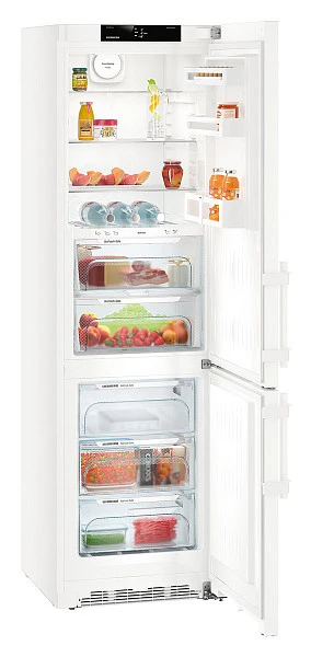 Холодильник Liebherr CBN 4835 объемом 391 литр, высотой 201 см и шириной 60 см можно установить в кухне любой площади. Лаконичный белый корпус из стали дополняют стильные ручки со встроенным толкателем. Уплотнитель двери обеспечивает дополнительную изоляцию и легко снимается для замены или очистки. Превосходное охлаждение гарантирует система DuoCooling с двумя раздельными контурами. Она позволяет выставлять температуру в камерах с точностью до градуса. Воздушные потоки не проникают из одной камеры в другую, предохраняя продукты от заветривания и появления посторонних запахов. Дополнительную защиту от бактерий осуществляет вентилятор с фильтром с активированным углем FreshAir. Электронная панель управления с сенсорным TFT-дисплеем позволяет устанавливать температуру в холодильном отделении в диапазоне от +3 до +9 °C. В морозильном отделении доступен диапазон температур от −15 до −26 °C. Система размораживания No Frost исключает образование наледи на стенках и продуктах.