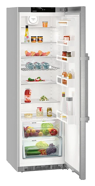 Liebherr Kef 4330 с зоной BioCool, которая продлевает хранение овощей и фруктов в свежем состоянии. С помощью специального переключателя вы можете регулировать влажность в ящиках; они выдвигаются на телескопических направляющих, что облегчает загрузку продуктов. Для их быстрого охлаждения с сохранением структуры и наполненности влагой можно использовать режим SuperCool. Фронт холодильника сделан из нержавеющей стали с покрытием SmartSteel, поэтому на ней не так заметны отпечатки пальцев. Дисплей с отображением температуры расположен сверху за дверью.