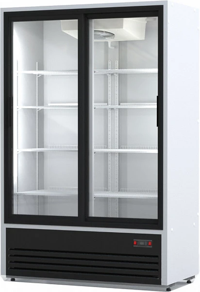 Практичная модель холодильного шкафа с компактно открывающимися стеклянными дверями-купе экономит торговое пространство.