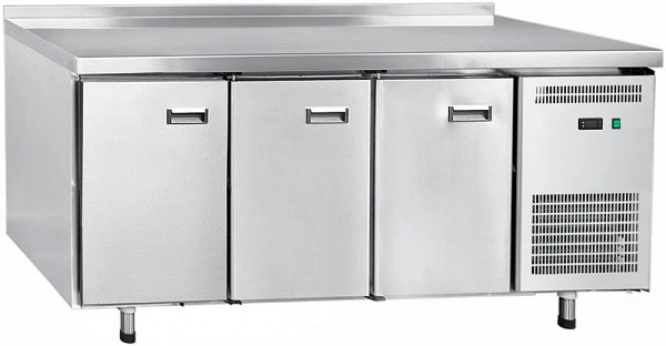 Холодильный стол Abat СХС-70-02 неохлаждаемая столешница с бортом (дверь, дверь, дверь) (24120011110) предназначен для хранения полуфабрикатов мяса и рыбы, или других скоропортящихся продуктов на предприятиях общественного питания и торговли.