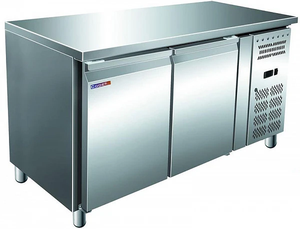 Стол с искусственным охлаждением внутреннего объема (встроенный холодильный шкаф) изготовлен из нержавеющей стали.