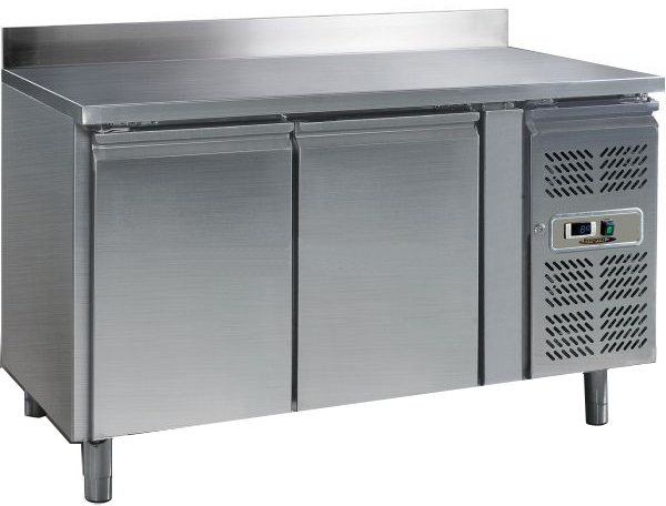 Стол холодильный, гастронормированный (GN1/1), с 2 распашными, самозакрывающимися, глухими дверями, бортом, для хранения пищевых продуктов, изготовлен из нержавеющей стали.