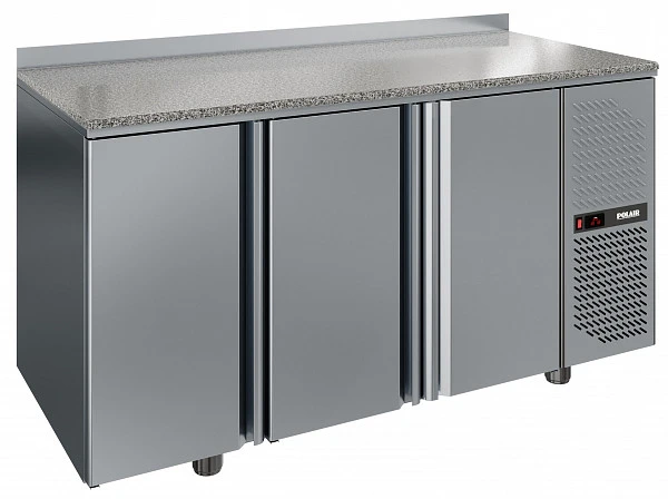 Холодильный стол Polair ТМ3-G гранит - компактный стол, сочетающий в себе холодильный шкаф с существенным объемом хранения и рабочую поверхность из натурального гранита - идеальное решение для небольшого помещения кондитерской, пекарни, пиццерии и т.п. Гранитная столешница оптимальна для работы с различными видами теста, шоколадом, мороженым и т.п.