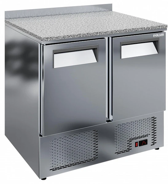 Холодильный стол Polair TMi2GN-GC гранит - компактный стол, сочетающий в себе холодильный шкаф с существенным объемом хранения и рабочую поверхность из натурального гранита - идеальное решение для небольшого помещения кондитерской, пекарни, пиццерии и т.п. Гранитная столешница оптимальна для работы с различными видами теста, шоколадом, мороженым и т.п.