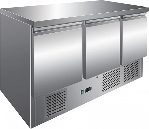 Холодильный стол Viatto S903SEC S/S TOP предназначен для кратковременного хранения продуктов и ингредиентов для блюд в охлаждённом виде на предприятиях общественного питания и торговли. Столешницу из нержавеющей стали можно использовать для разделки и обработки продуктов. Агрегат расположен снизу. Корпус и камера изготовлены из нержавеющей стали.