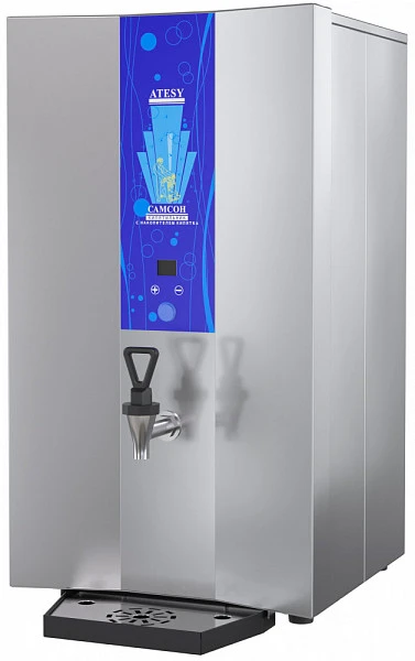Кипятильник Atesy Самсон КНЭ-12-01 используется на предприятиях общественного питания и торговли для непрерывного приготовления кипятка для варки гарниров, овощей, сосисок, пельменей и других продуктов питания, а также для заваривания и приготовления горячих напитков, стерилизации кухонной и столовой посуды, столовых приборов. Модель оснащена 2 модулями: генератором кипятка и накопителем, где накапливается и подогревается до требуемой температуры кипяченая вода. Все элементы, включая ТЭН генератора кипятка, выполнены из пищевой легированной стали.