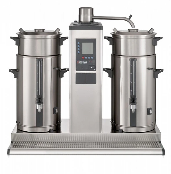 Кофемашина Bravilor Bonamat В20 используется на предприятиях общественного питания и торговли для приготовления фильтрованного кофе и горячей воды, предназначенной для супа, каши, чая и других горячих напитков.Модель оснащена цифровым дисплеем, системой кофеварения, 2 емкостями для кофе с подогревом, 2 заварными чашами, индикаторами заполнения, готовности кофе и удаления накипи и поддоном для капель. Корпус выполнен из нержавеющей стали.