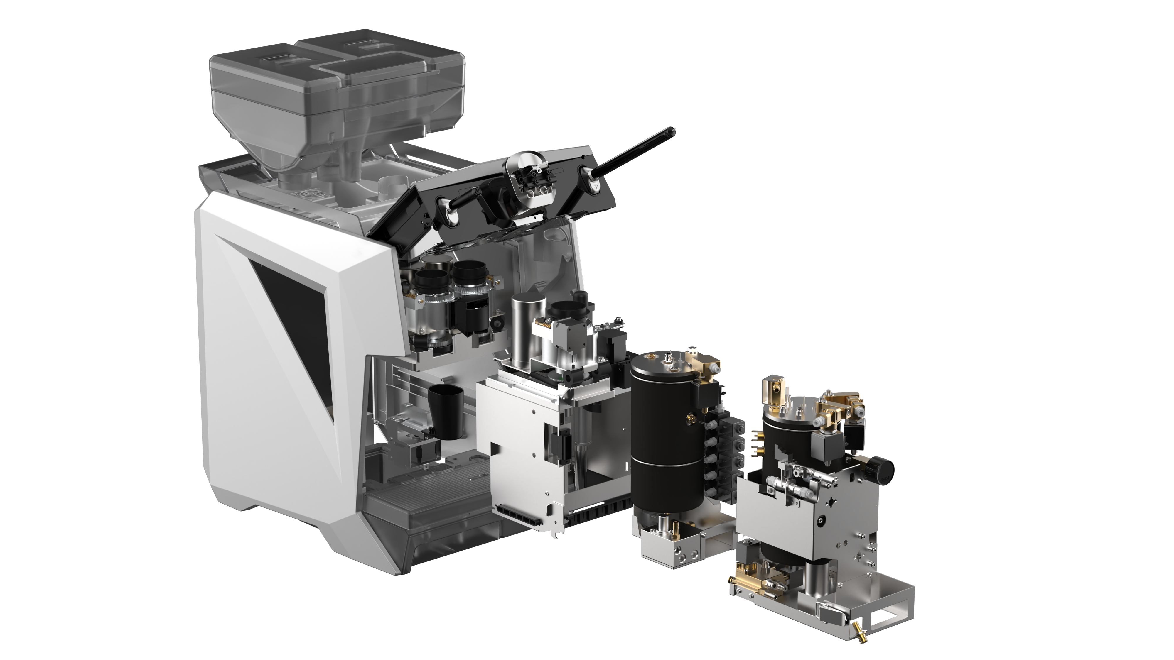 Металлический модуль с двумя камероми заваривания емкостью по 24гр. каждая, имеет повышенную надежность для работы с постоянной высокой нагрузкой. Система обратной гравитационной экстракции и вертикальной инфузии, позволяет воде проникать в кофе более равномерно, обеспечивает максимальную эффективность, гарантируя при этом неизменно высокое качество напитка.