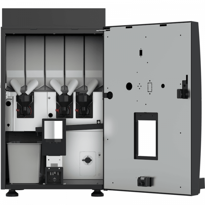 Автономность и вместительность - 5 бункеров по 2,8 кг каждый для сыпучих ингредиентов (сухие сливки, шоколад, раф-микс, составы для милкшейков) обеспечивают более 200 порций без дозаправки.