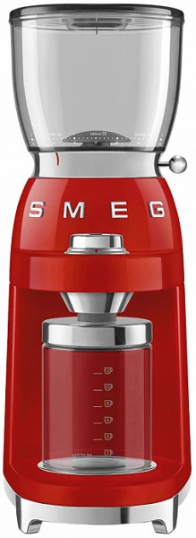 Кофемолка Smeg CGF01RDEU предназначена для использования в частных домах и квартирах для размола кофейных зерен. Модель выполнена в стиле 50-х годов. Корпус изготовлен из окрашенного металла, конические жернова и магнитный держатель съемного контейнера для молотого кофе - из нержавеющей стали, контейнеры для зерен кофе и молотого кофе - из Tritan™.