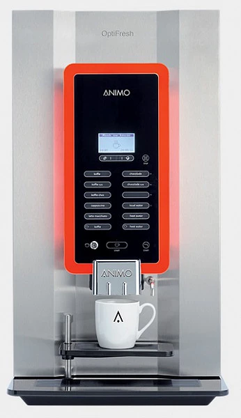 Кофейный аппарат Animo OPTIFRESH 3 NG автоматический для инстантного кофе и напитков на его основе (кофе с молоком, капучино, латте макиато, шоколадное молоко и пр.) с производительностью до 130 чашек/ч.Кнопочная панель управления с 12 программируемыми кнопками (по умолчанию установлены заводские настройки) для выбора кофе одним нажатием.