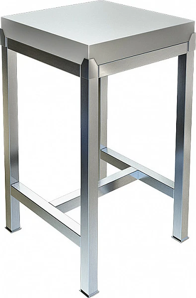 Модель оснащена обвязкой и регулируемыми по высоте ножками, что позволяет компенсировать неровности пола. Сварной каркас выполнен из полой трубы квадратного сечения 40х40 мм из нержавеющей стали AISI 304 толщиной 1,2 мм, столешница - из полипропилена толщиной 60 мм.