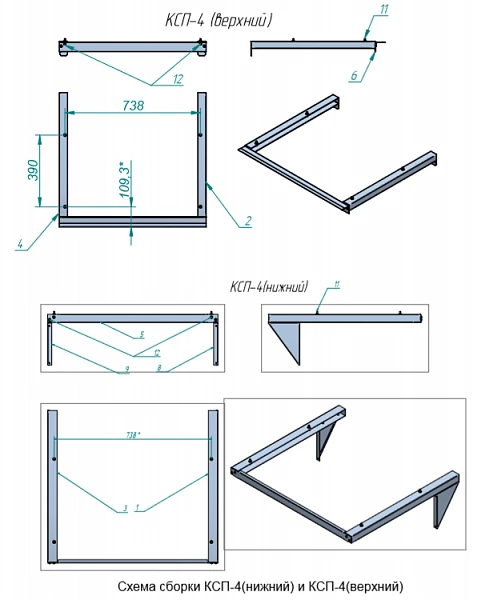 Габаритные размеры КСП (верхний), мм: 800x715x235