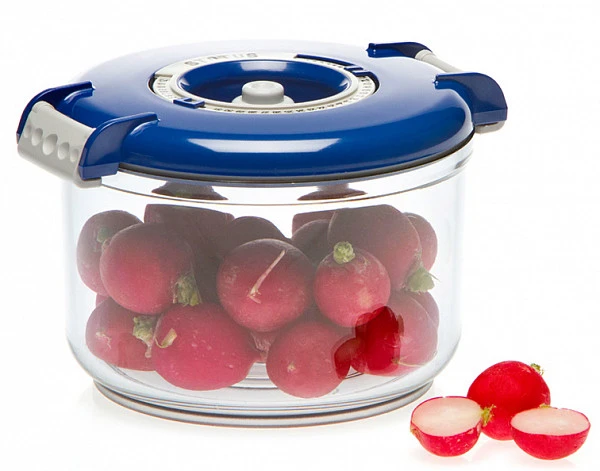 Контейнер вакуумный Status VAC-RD-075 Blue используется для компактного хранения продуктов, позволяя экономить пространство.