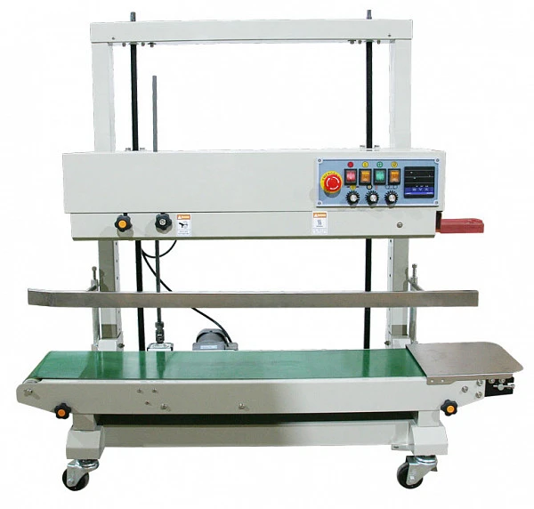 Конвейерный запайщик Магикон FRD-1200V выполняет функцию автоматической запайки пакета, а также включает в себя цветную печать (сухие чернила), непрерывное передвижение продукта по транспортеру.