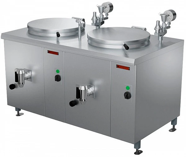 Котел пищеварочный Проммаш КЭ-200Ц с двумя независимыми варочными сосудами с негерметичной крышкой предназначен для приготовления бульонов, первых блюд, компотов, напитков, овощей, гарниров на предприятиях общественного питания традиционным способом. Возможно использование котла с применением функциональных емкостей.