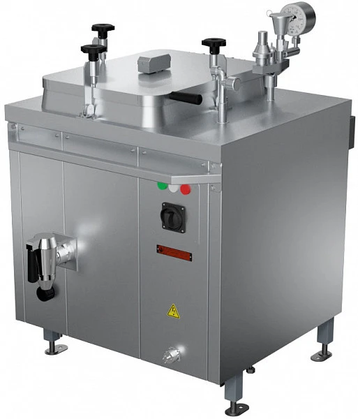 - Наличие двойной герметичной крышки. Одна крышка – прямоугольная, с накидными рычагами - служит для санитарной обработки, а также для загрузки продуктов в варочный сосуд.