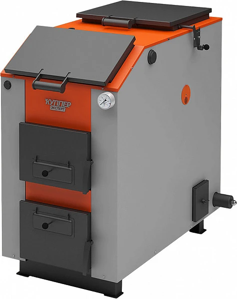 Котел твердотопливный Теплодар КУППЕР ЭКСПЕРТ-45 используется для обогрева частных домов, гаражей, дач и других помещений, оборудованных системой водяного отопления с принудительной циркуляцией теплоносителя, как самостоятельный источник тепловой энергии или как дополнение к существующим системам отопления. Модель имеет двухшахтную конструкцию с большой площадью контакта с горячими дымовыми газами, оснащена развитой поверхностью водяной рубашки и водотрубными теплообменниками. Корпус котла выполнен из качественной конструкционной стали, боковые поверхности корпуса водяной рубашки теплоизолированы базальтовым картоном и облицованы декоративными панелями с полимерным покрытием.
