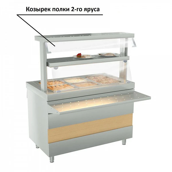 Козырек полки 2-го яруса Kayman Presto (800мм) защищает готовые блюда или другой товар размещенный на полке от попадания в них пыли и посторонних предметов со стороны посетителей.