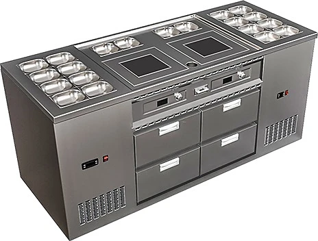 2 охлаждаемые ванны вместимостью 8 емкостей GN 1/6 глубиной 150 мм каждая