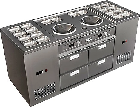 2 охлаждаемые ванны вместимостью 8 емкостей GN 1/6 глубиной 150 мм каждая
