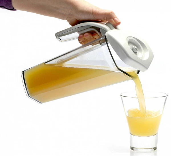 Форма кувшина разработана для удобного хранения на полке в дверце холодильника.